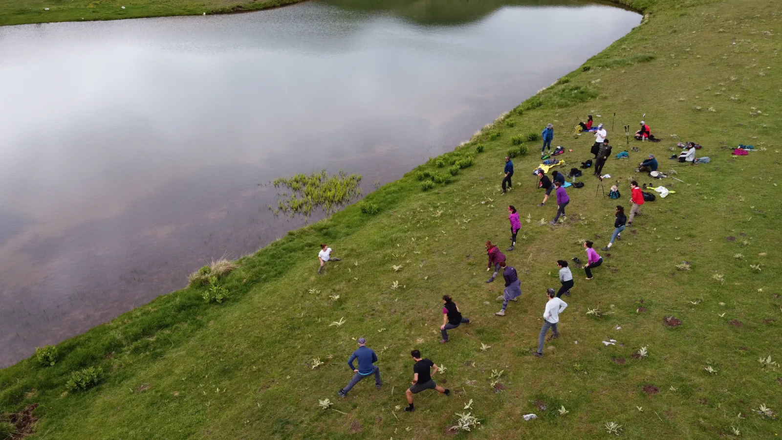 backpackongreece-image-smolikas-drakolimni-2026-09 Μάθημα ευλυγισίας μπροστά στη λίμνη.