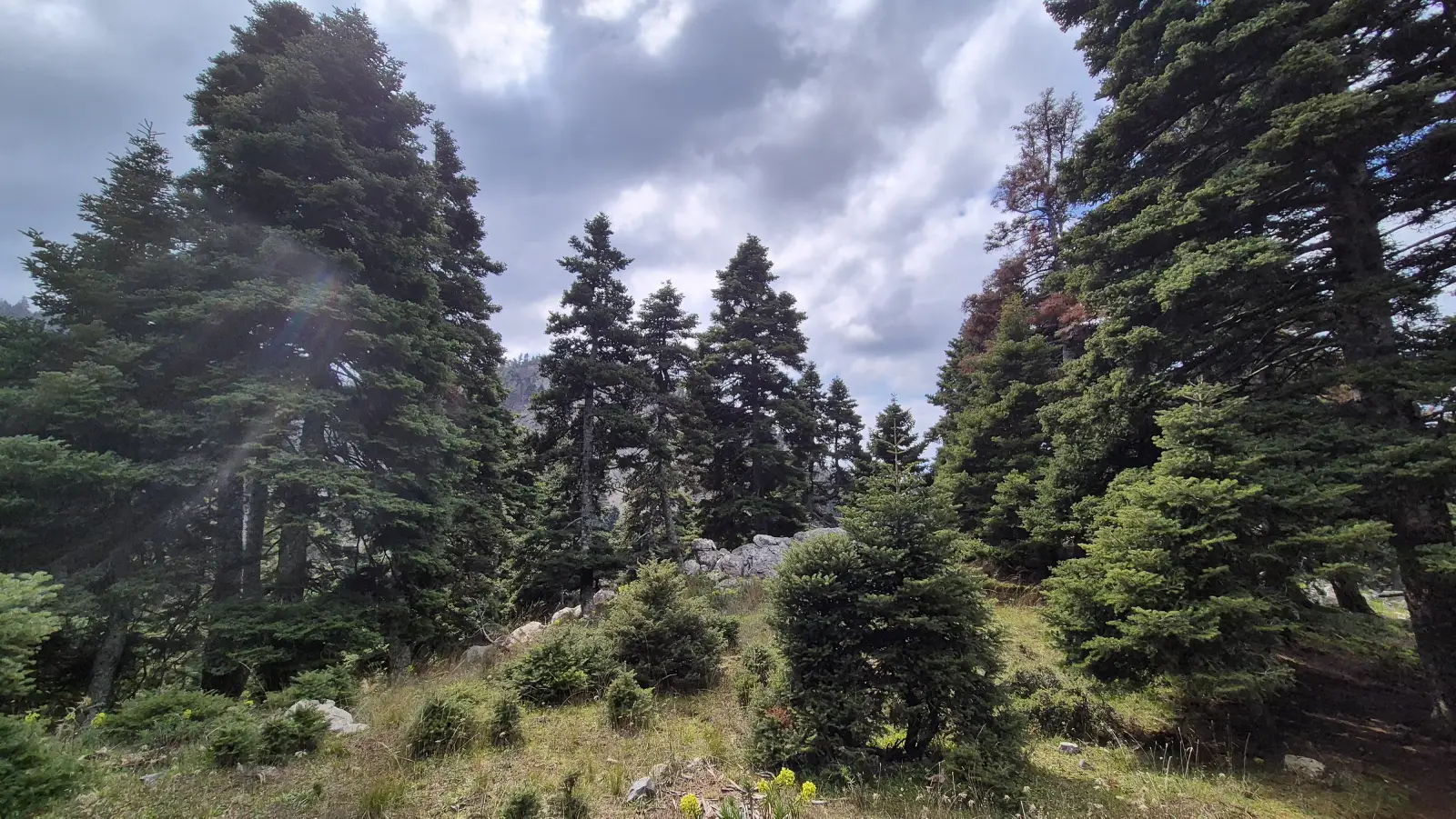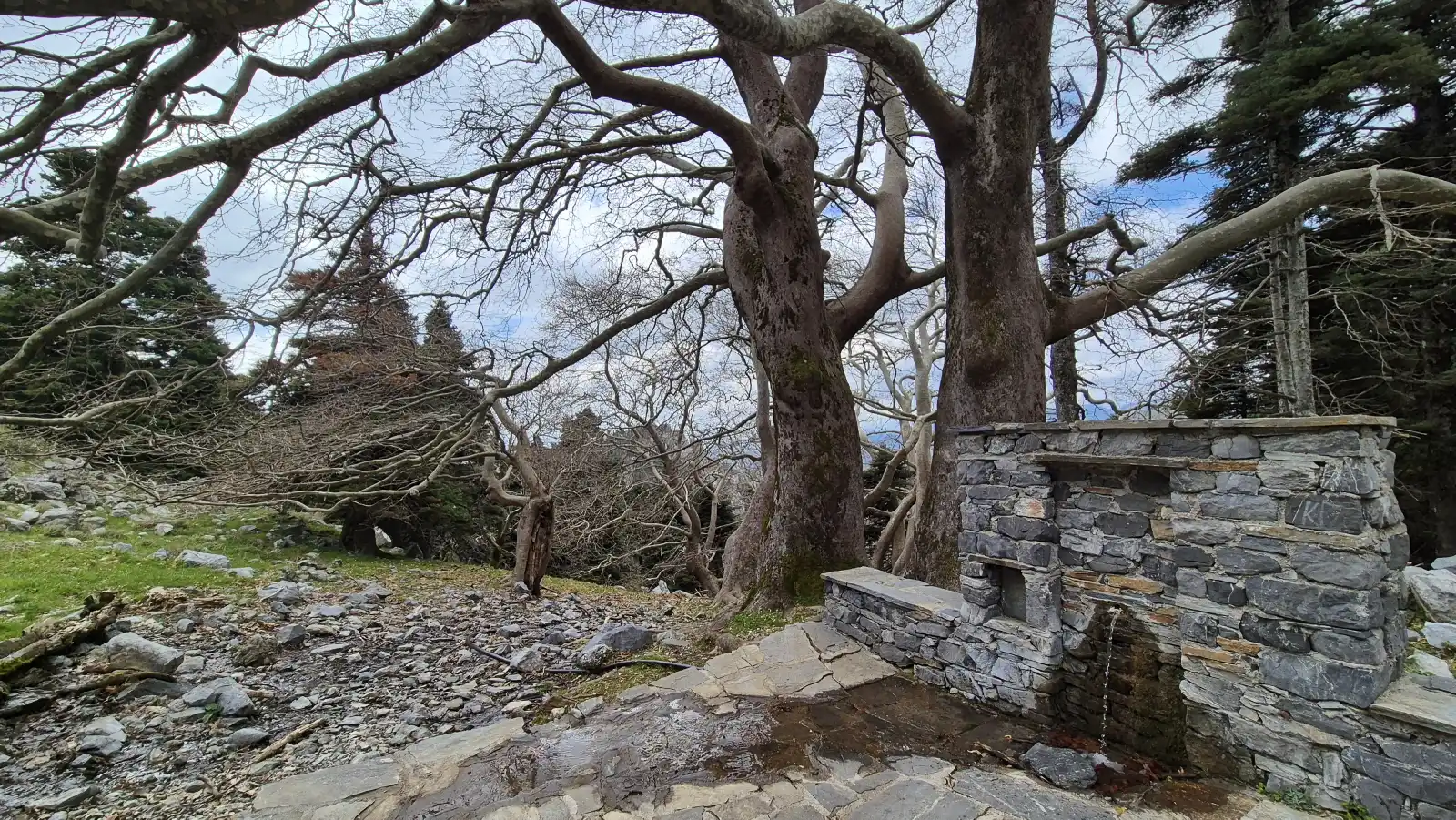 Η βλάστηση αλλάζει συνεχώς: δάσος πεύκης και μεσογειακοί θάμνοι δίνουν τη θέση τους σε αιωνόβια πλατάνια, σφενδάμια, καστανιές και βελανιδιές, ενώ ψηλότερα στις πλαγιές της Δίρφυς εμφανίζεται η χαρακτηριστική κεφαλληνιακή ελάτη. Πρώτη μας στάση θα είναι η πηγή Κράτια (730 μ.), με τον εντυπωσιακό γιγαντιαίο πλάτανο – ένα από τα πιο όμορφα σημεία της διαδρομής στο φαράγγι.
