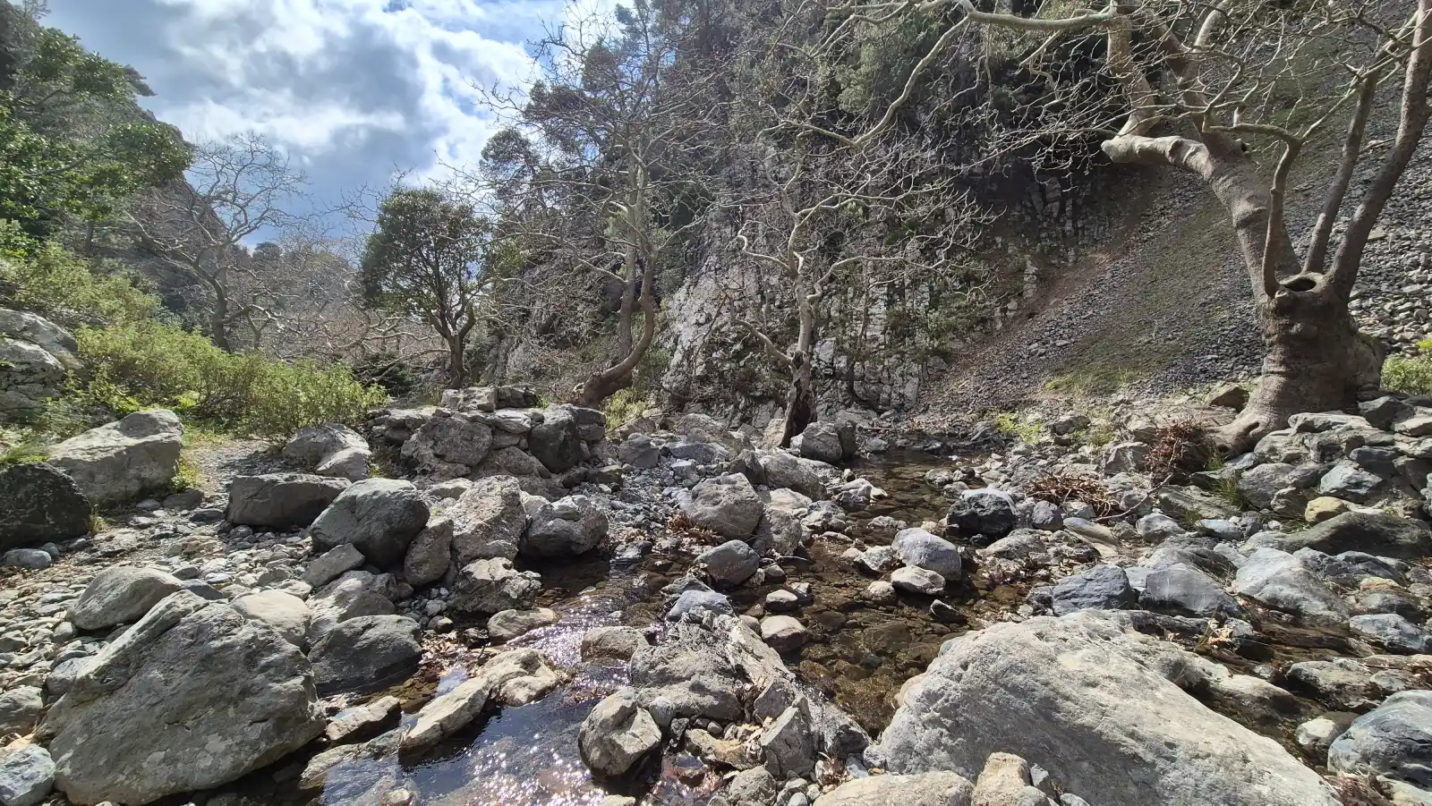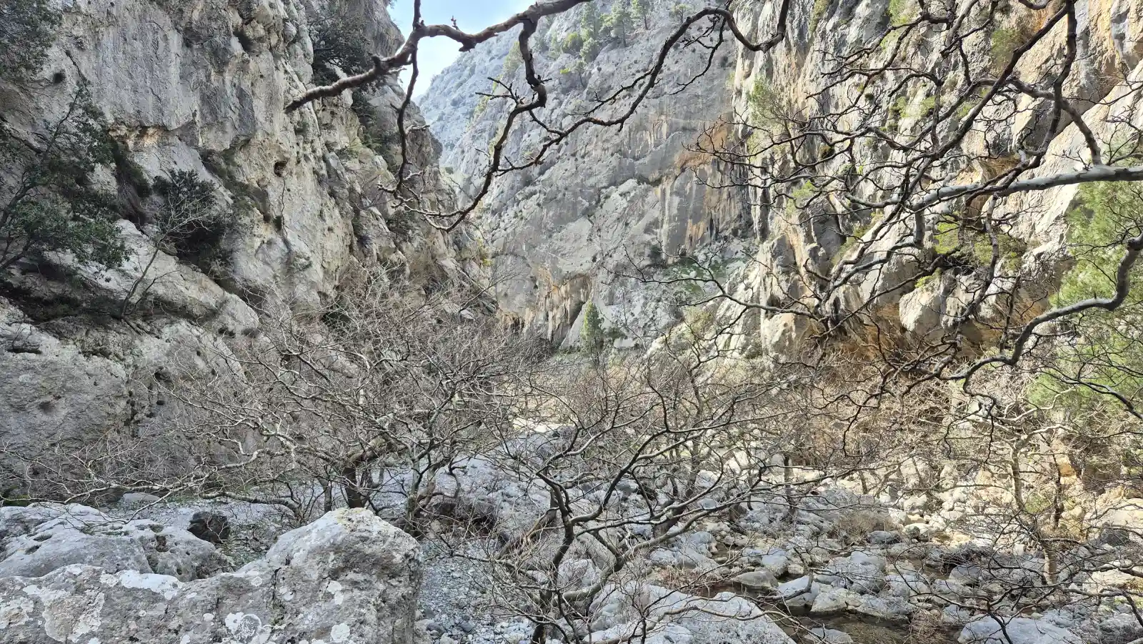 Ακολουθούμε τη ρεματιά, αλλάζοντας πλευρά, περνώντας πάνω από γεφύρια, ενώ το φαράγγι στενεύει ολοένα και περισσότερο και τα ψηλά βράχια κλείνουν εντυπωσιακά γύρω μας μέχρι την έξοδο.