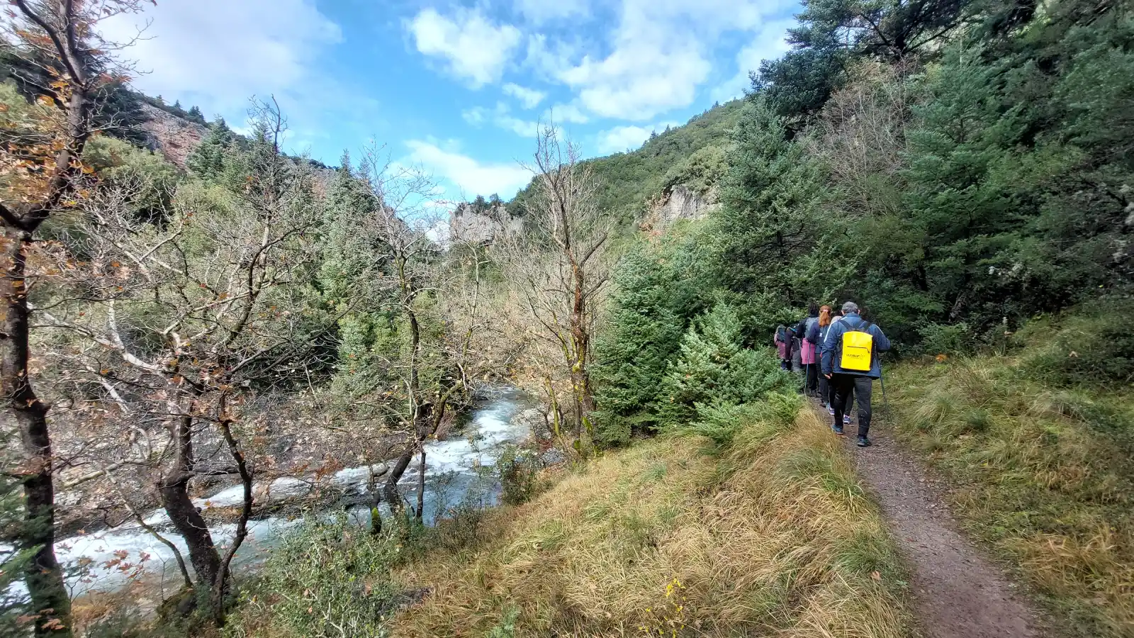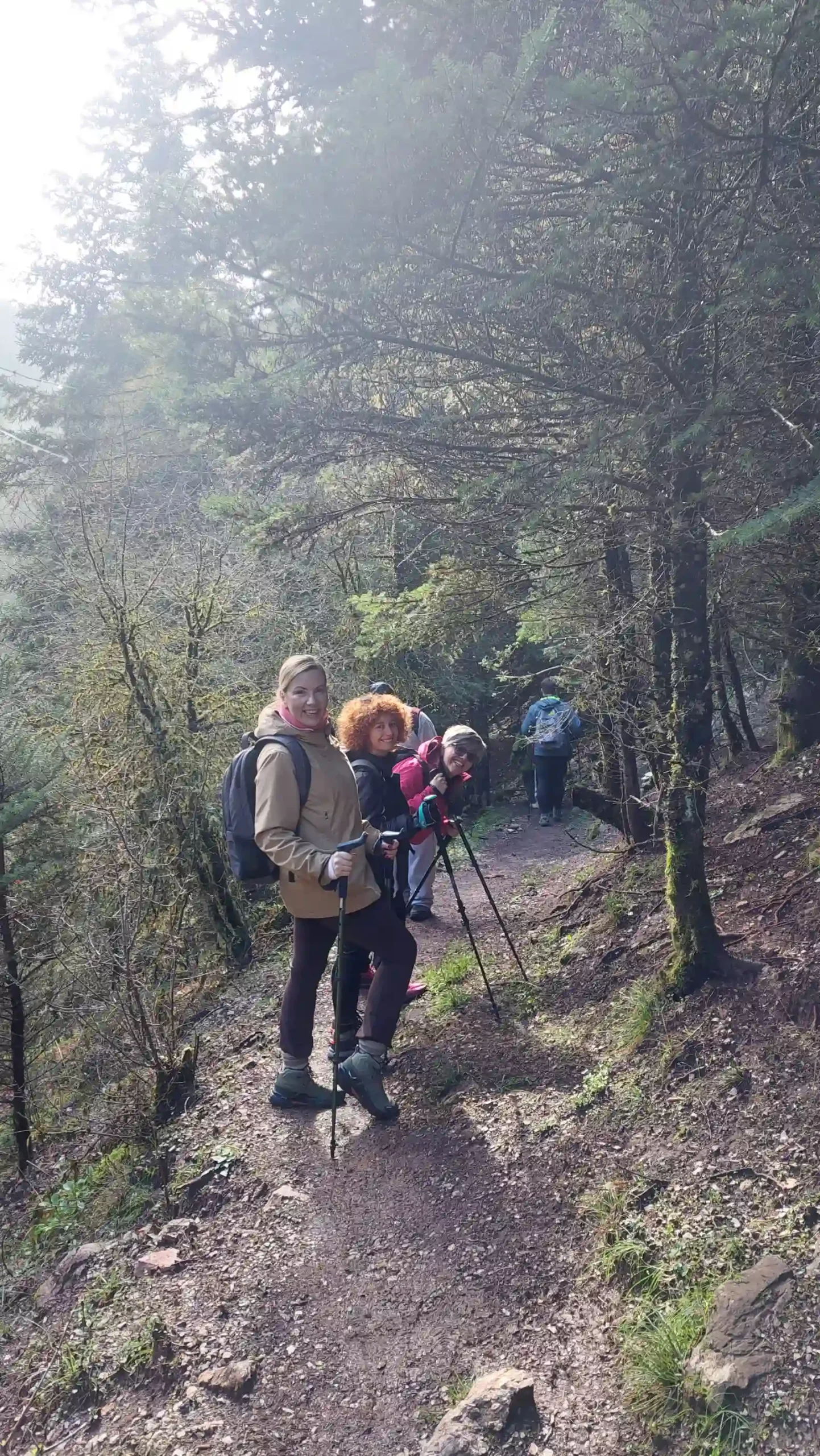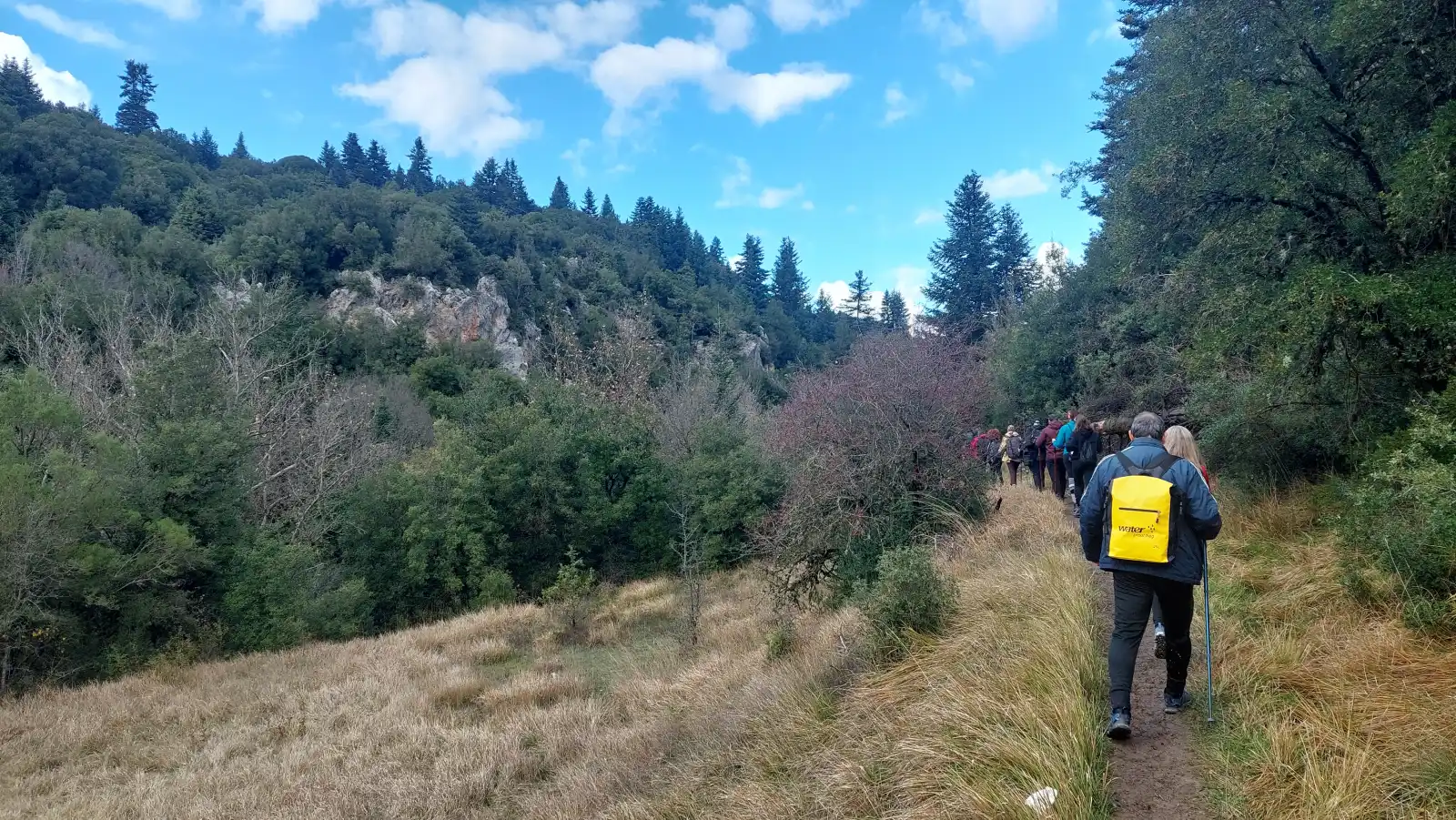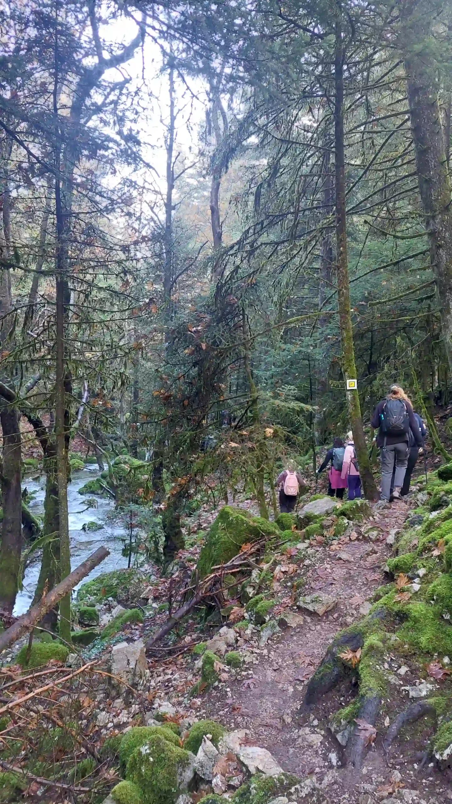 Το μονοπάτι είχε αρκετή λάσπη λόγω των πρόσφατων βροχών, κάνοντάς το παιχνίδι για την ομάδα — λίγο πιο απαιτητικό σε σημεία, αλλά και πολύ πιο ζωντανό. Η εναλλαγή νερών, ξέφωτων και δασικών περασμάτων μάς συνόδευε σε κάθε βήμα, ενώ το Μαίναλο απλωνόταν γύρω μας με όλες τις αποχρώσεις του χειμώνα. Στα σημεία θέας, το βλέμμα έφευγε μακριά προς τις βουνοκορφές και τους οικισμούς που “κρύβονται” ανάμεσα στο δάσος, προσφέροντας εκείνη τη μοναδική αίσθηση ότι βρίσκεσαι μέσα σε μια κινούμενη ζωγραφιά.