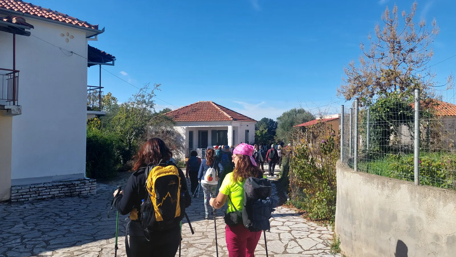 Πεζοπόροι σε ηλιόλουστο μονοπάτι προς το Φαράγγι των Κενταύρων