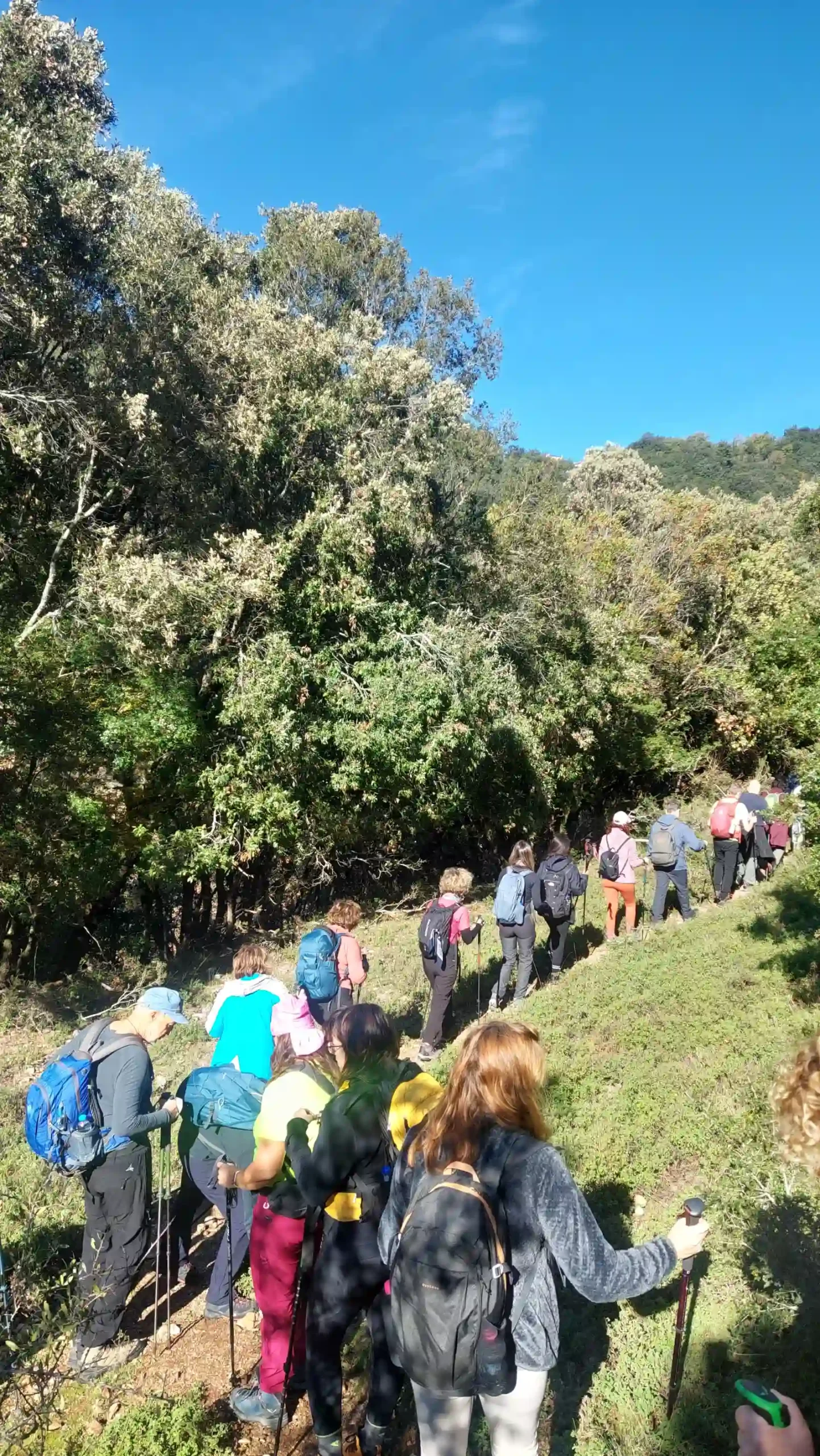 Το γκρουπ απολαμβάνει ένα από τα πιο όμορφα μονοπάτια μέσα στο δρυοδάσος της Φολόης.