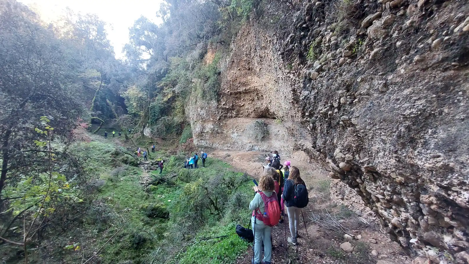 Η ομάδα περπατά σε ηλιόλουστο μονοπάτι πριν την είσοδο στο φαράγγι.