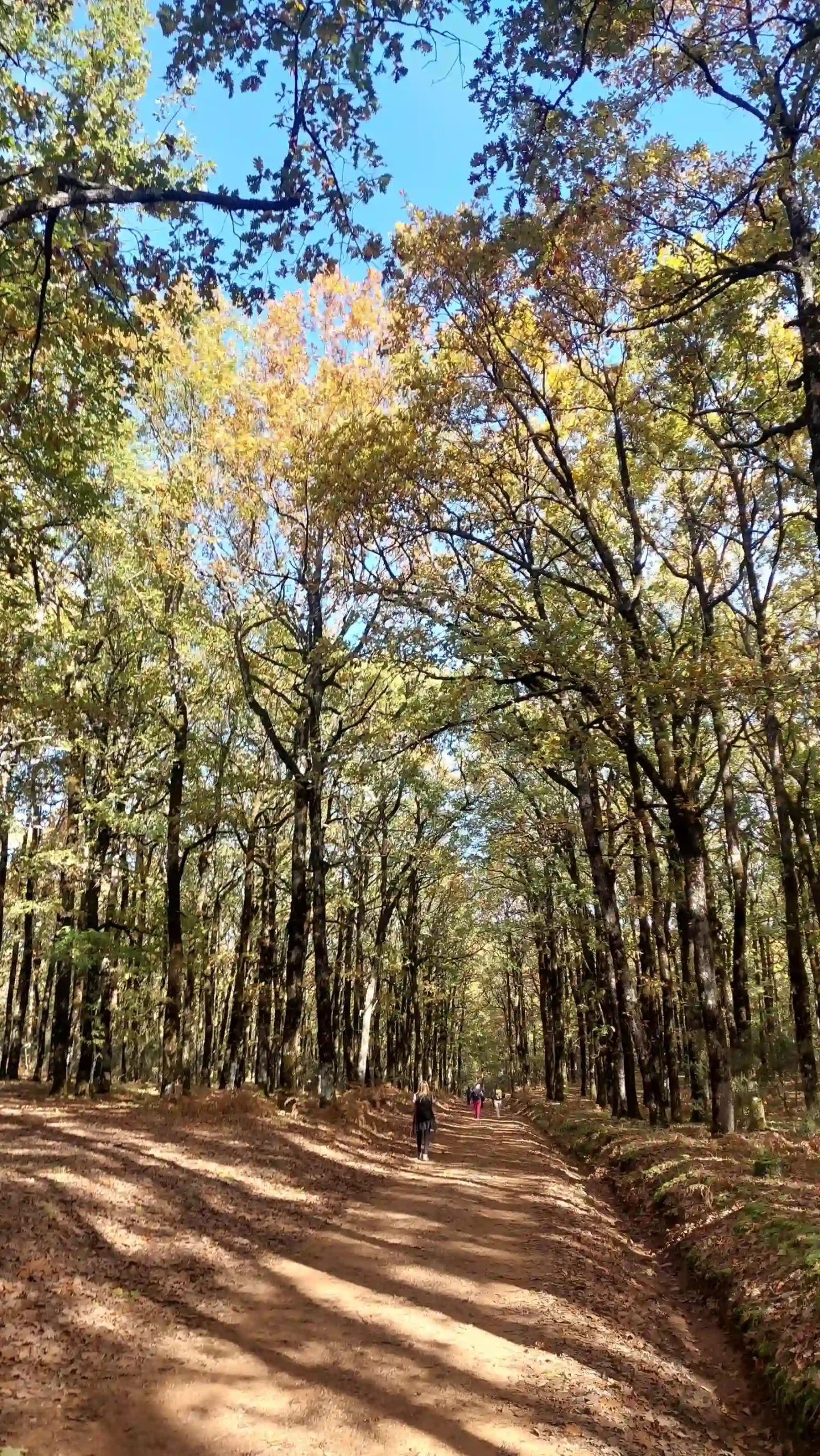 Η ομάδα συνεχίζει μέσα στο δρυοδάσος, απολαμβάνοντας τον ήλιο ανάμεσα στα δέντρα.