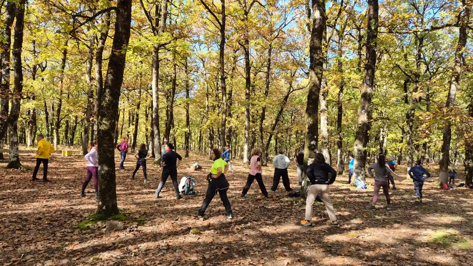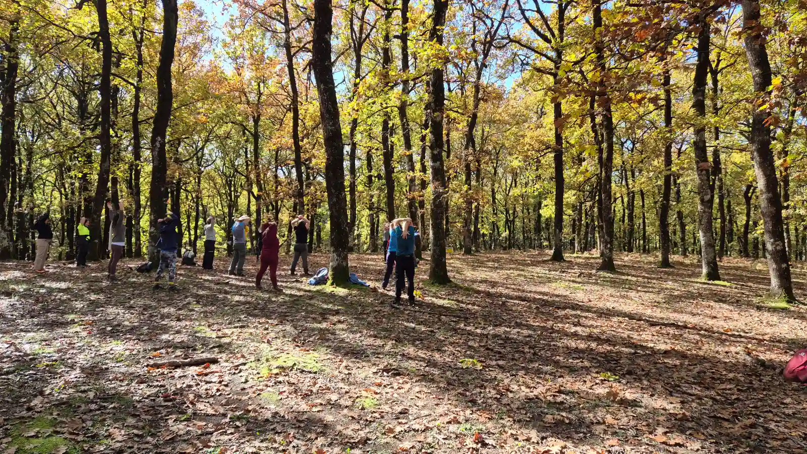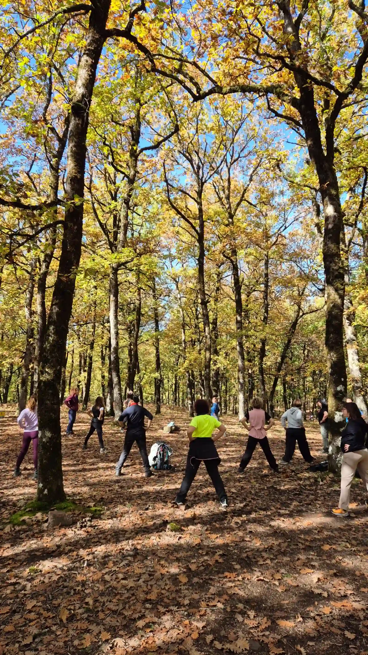 Η ομάδα απολαμβάνει ήρεμες ασκήσεις μέσα στο περιβάλλον του δρυοδάσους.