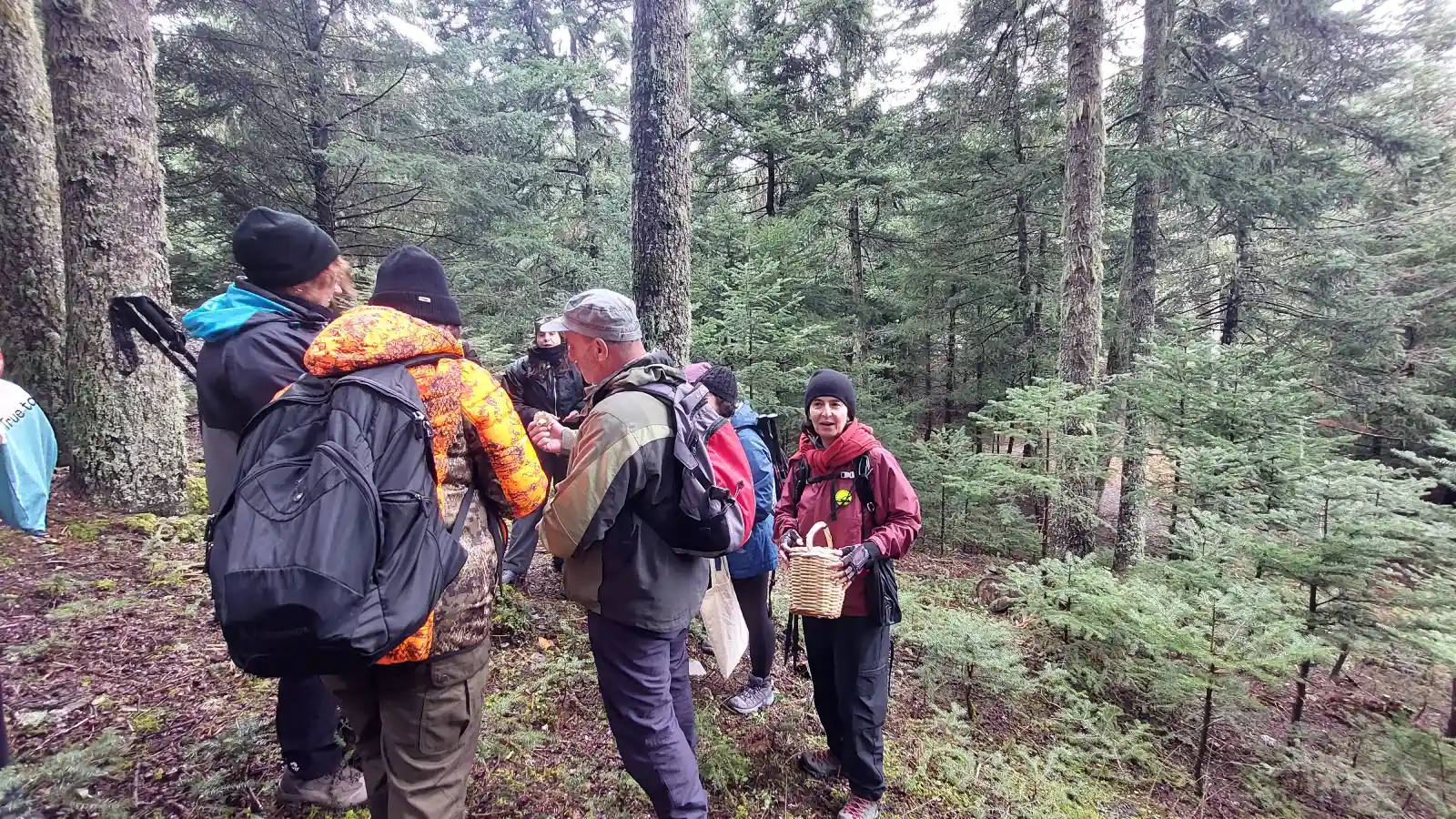 Συμμετέχοντες κινούνται προσεκτικά στο δάσος του Μαινάλου αναζητώντας μανιτάρια