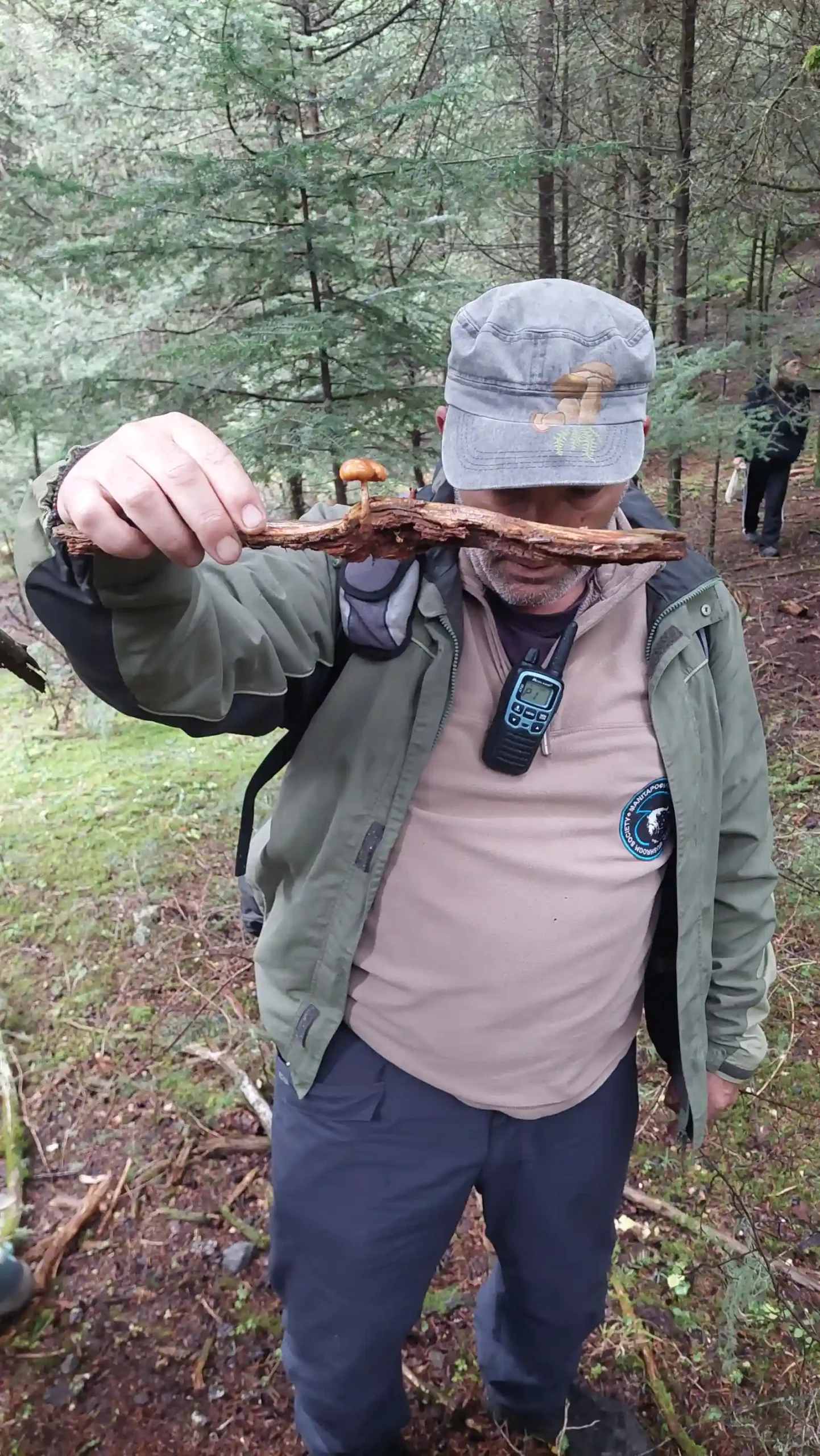 Μέλος της ομάδας μοιράζεται χαρούμενα ένα από τα μανιταρο-ευρήματά της στο Μαίναλο.