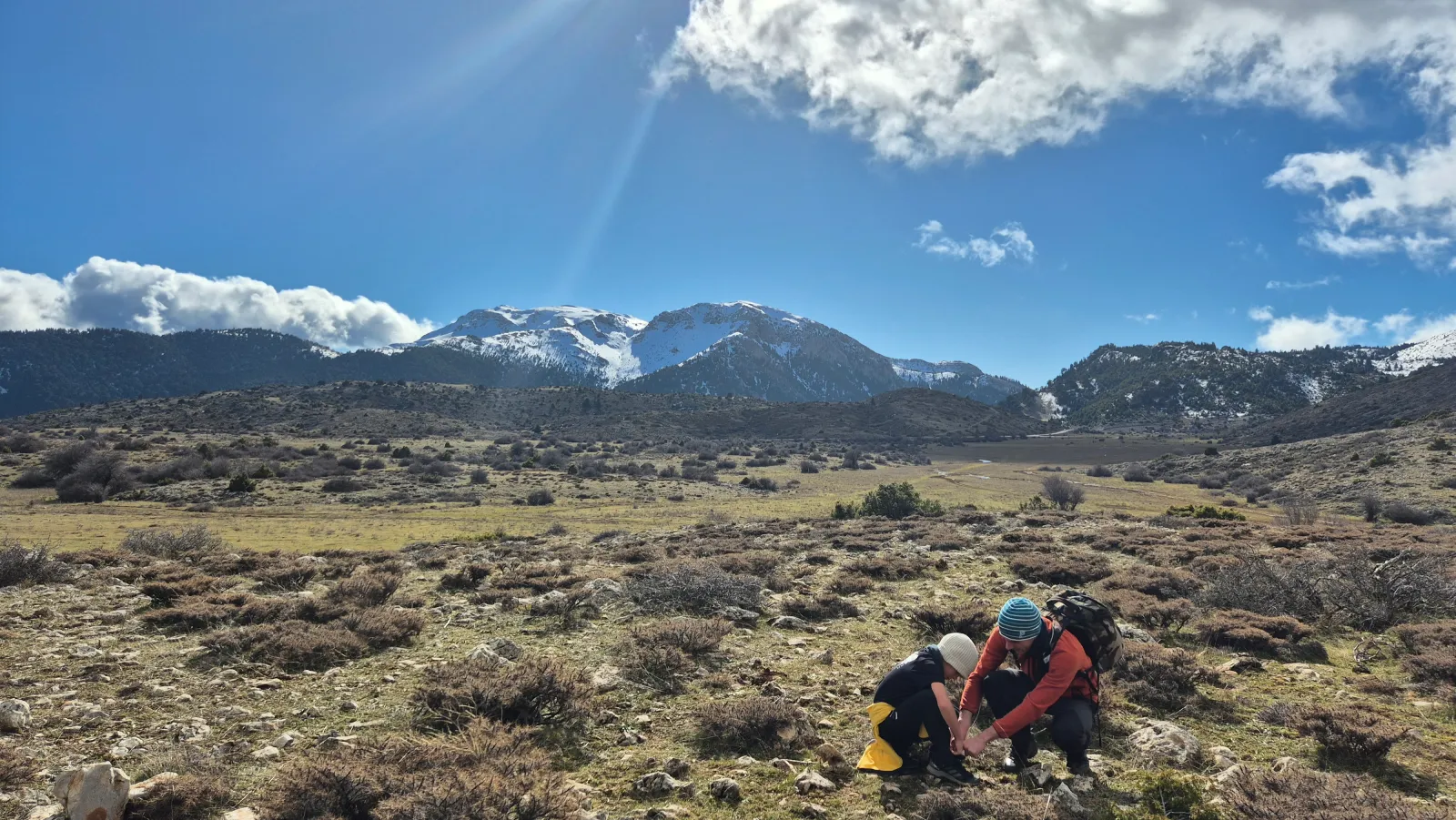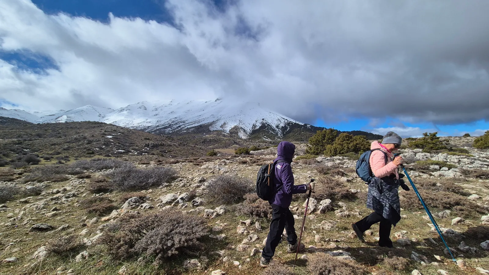 Πεζοπορία στο οροπέδιο της Ζήρειας με θέα τις χιονισμένες πλαγιές της Μεγάλης Ζήρειας.