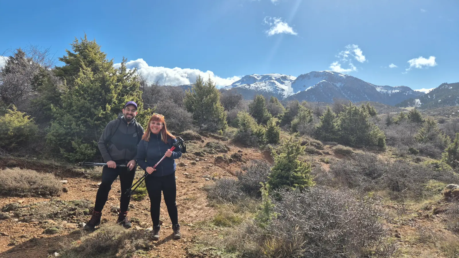 Χαμόγελα της ομάδας στο μονοπάτι με φόντο τη Ζήρεια