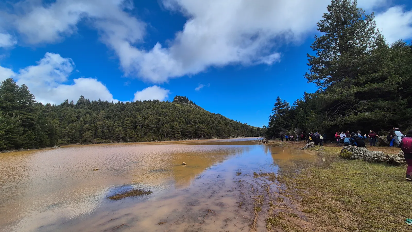 Στιγμή χαλάρωσης της ομάδας δίπλα στη λίμνη στη Ζήρεια