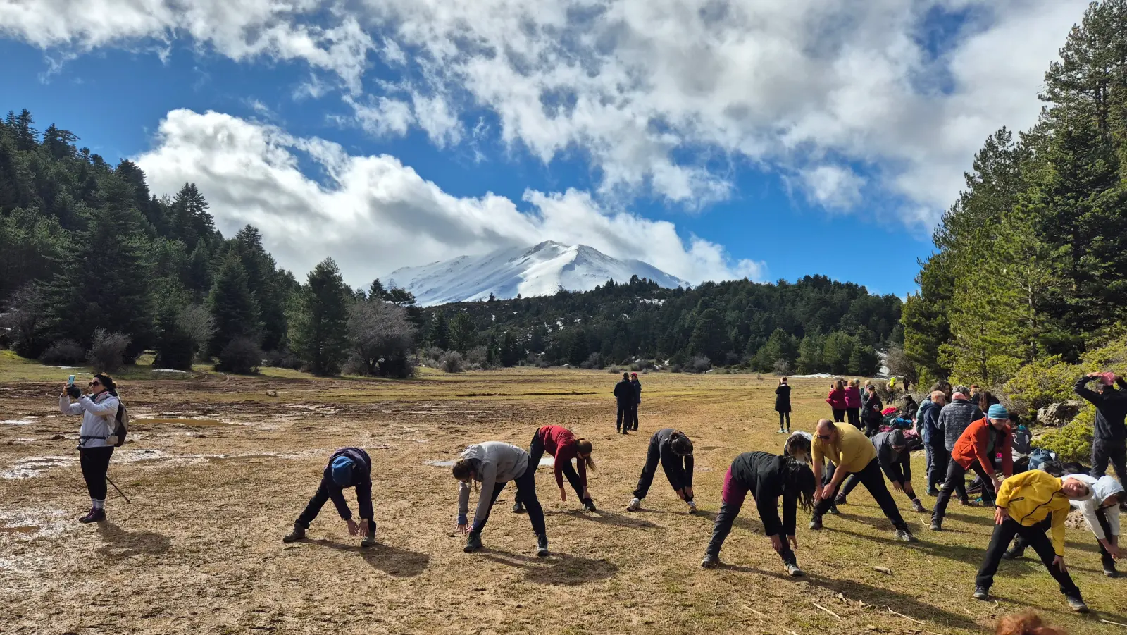 Φτάνοντας στον προορισμό μας, απολαύσαμε μια χαλαρή στάση δίπλα στα ήρεμα νερά. Η Λένα μάς καθοδήγησε σε ασκήσεις αναπνοών και διατάσεις, δίνοντάς μας χρόνο να συνδεθούμε με το σώμα και τη φύση. Αυτές οι στιγμές κάνουν κάθε εξόρμηση στη Ζήρεια ξεχωριστή — όχι μόνο για το τοπίο, αλλά για την αίσθηση που σου αφήνει.