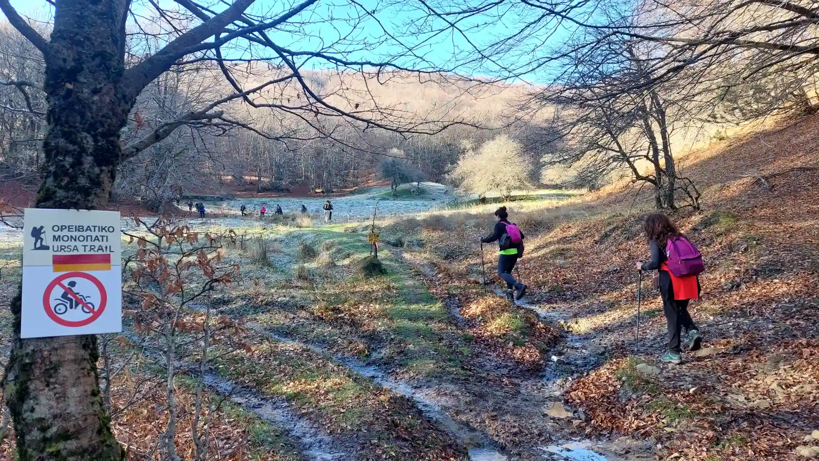 Η δεύτερη ημέρα ήταν αφιερωμένη στην καρδιά της εμπειρίας: την πεζοπορία στο Ursa Trail, το μονοπάτι που ακολουθεί τα χνάρια της αρκούδας μέσα στα δάση ελάτης και οξιάς της Πίνδου. Το πρωινό ξεκίνησε δροσερό, αλλά ο ήλιος στάθηκε σύμμαχός μας σε όλη τη διάρκεια της διαδρομής, φωτίζοντας το χειμωνιάτικο τοπίο και χαρίζοντάς μας μοναδικές εικόνες. Η διαδρομή κύλησε απολαυστικά, με καλή διάθεση, γέλια και την αίσθηση ότι περπατάμε σε ένα από τα πιο χαρακτηριστικά μονοπάτια της περιοχής.
