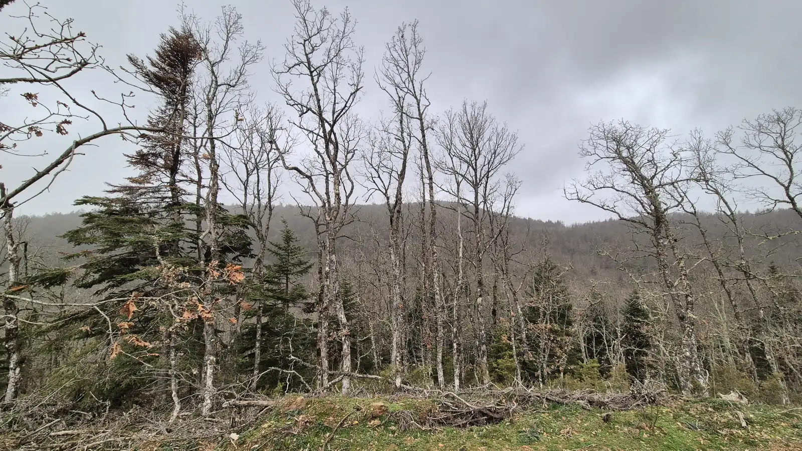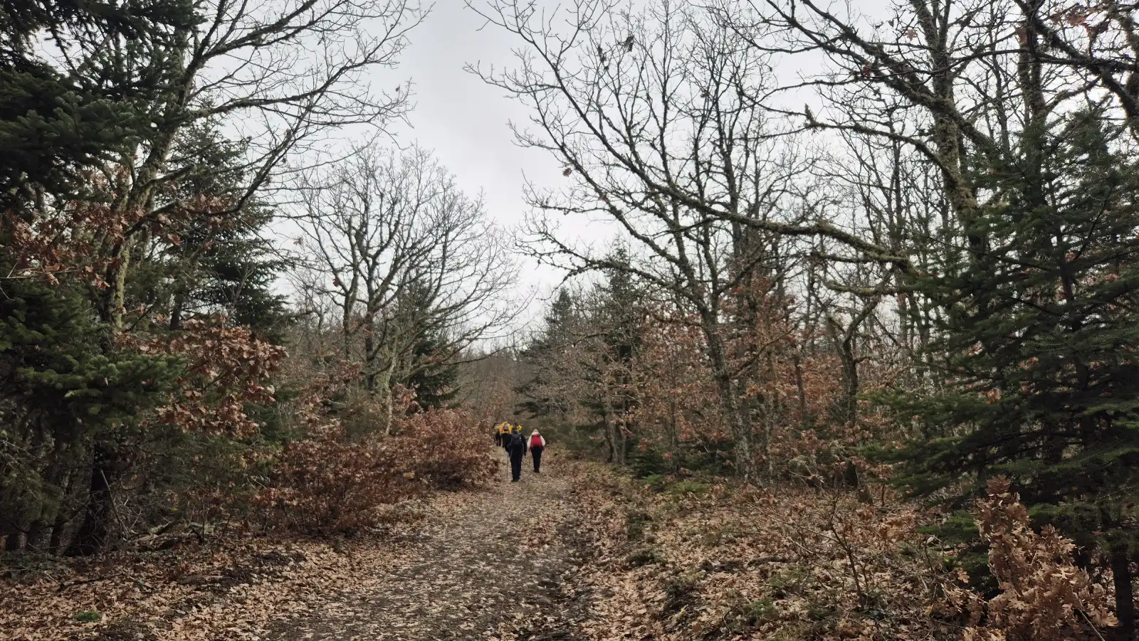 Η διαδρομή κινήθηκε κυρίως σε δασικούς δρόμους και ήπια μονοπάτια, ανάμεσα σε έλατα, πεύκα, καστανιές και καρυδιές. Ο καιρός ήταν αρκετά καλός, με μια μικρή ψιχάλα στα μέσα της πορείας που απλώς δρόσισε την ατμόσφαιρα χωρίς να επηρεάσει τον ρυθμό της ομάδας. Δεν υπήρχαν χιόνια, όμως το τοπίο παρέμενε καταπράσινο και ζωντανό, ιδανικό για πεζοπορία στον Πάρνωνα. Στο διάσελο του Ζυγού απολαύσαμε καθαρή θέα προς τις κορυφές του βουνού και εκείνη τη χαρακτηριστική σιωπή που μόνο το δάσος μπορεί να προσφέρει.